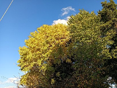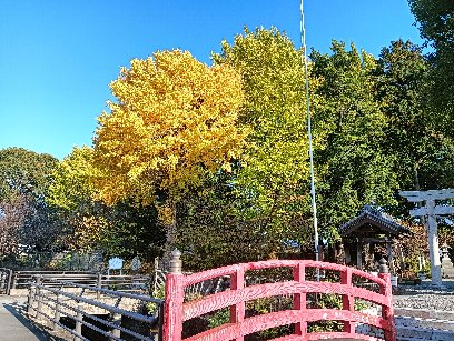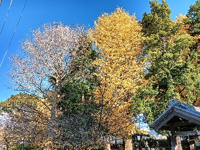 昨日から風が強く、手前のイチョウの葉もだいぶ散りました。