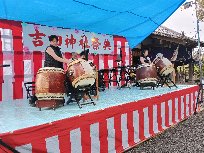 祝い太鼓奉納はお子様が自ら年の数だけ太鼓を打ち神様に報告させていただきます。(力一杯打って下さいね)