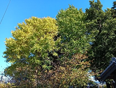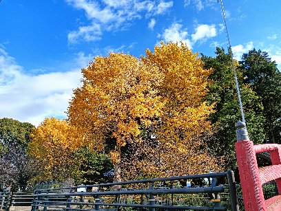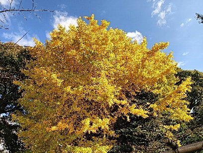 昨日から風が強く、手前のイチョウの葉もだいぶ散りました。
