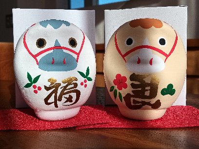 干支だるまにの後ろには「開運 佐野原神社」のシールをはってあります~