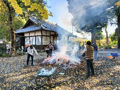 神社の枯れ葉、落ち葉」で焼いた芋は御利益がありますね。
